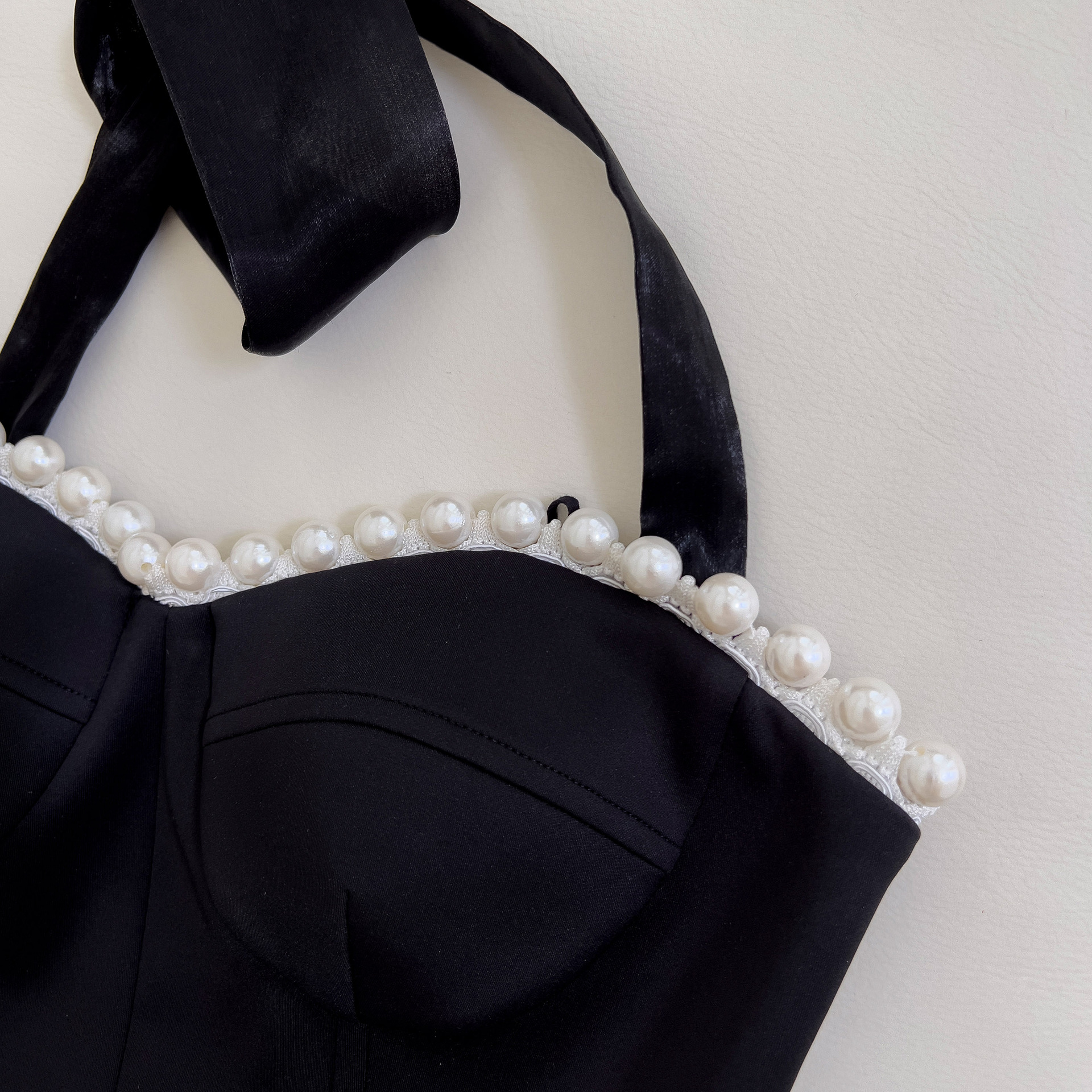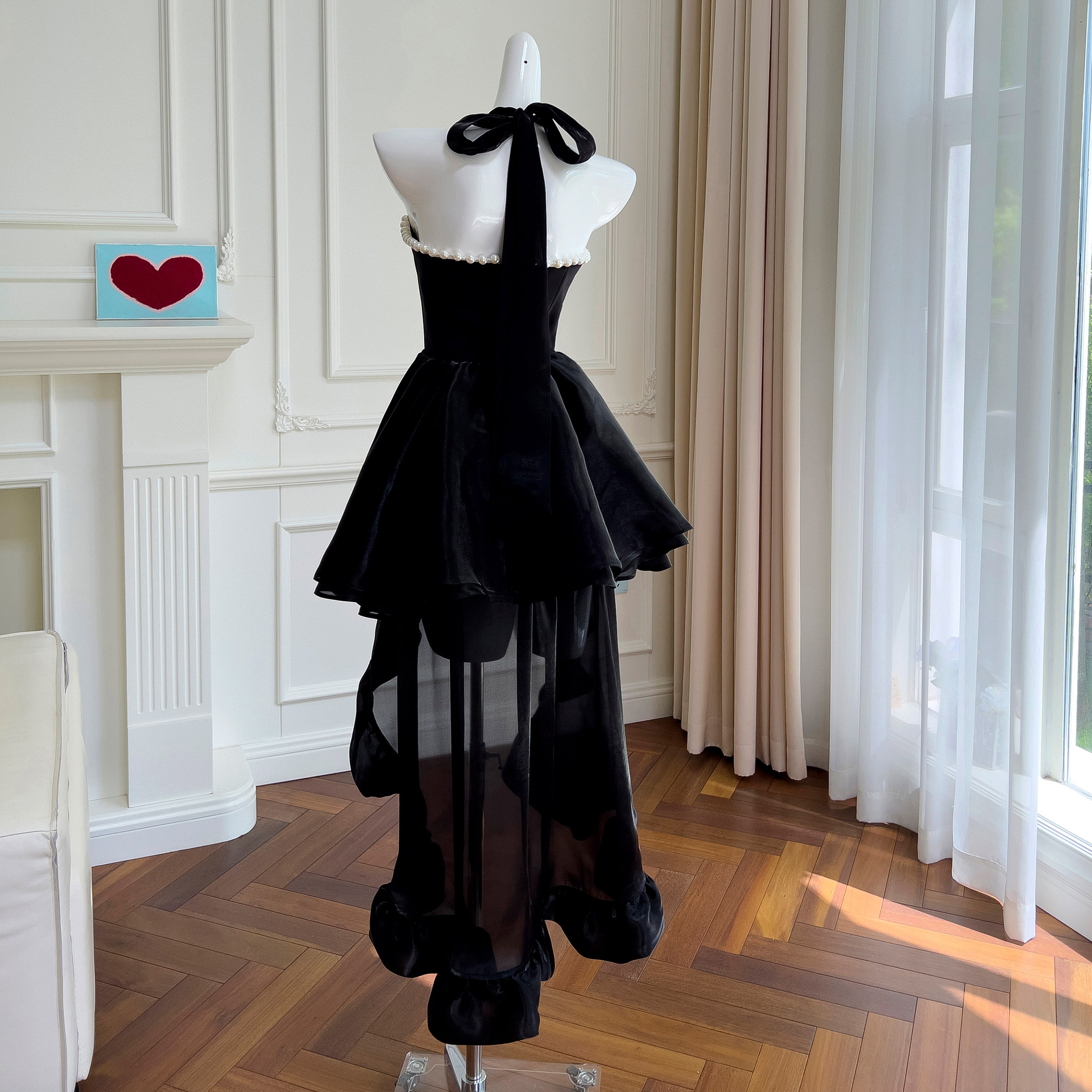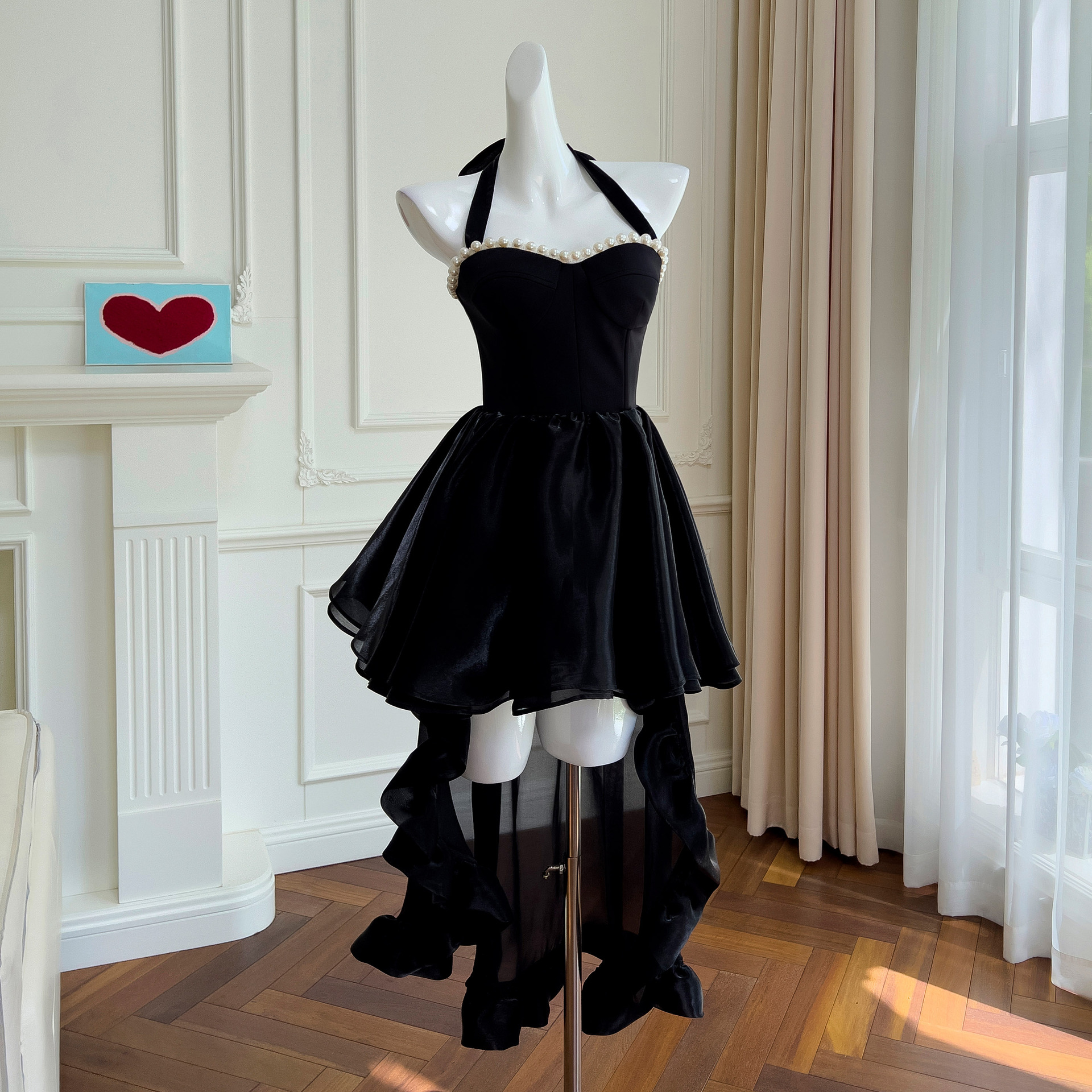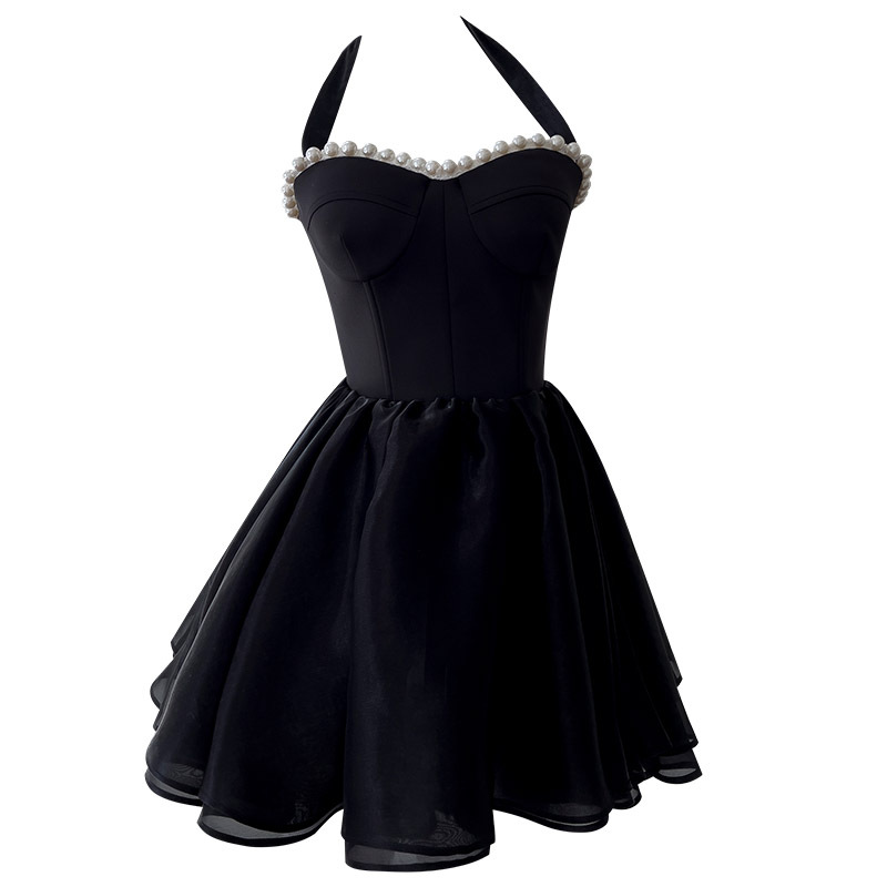 Qtevry And Summer New Fashion Hanging Neck Sexy Bare Shoulder Perspective Small Dress Two Sets Of Set Party Skirt 67889