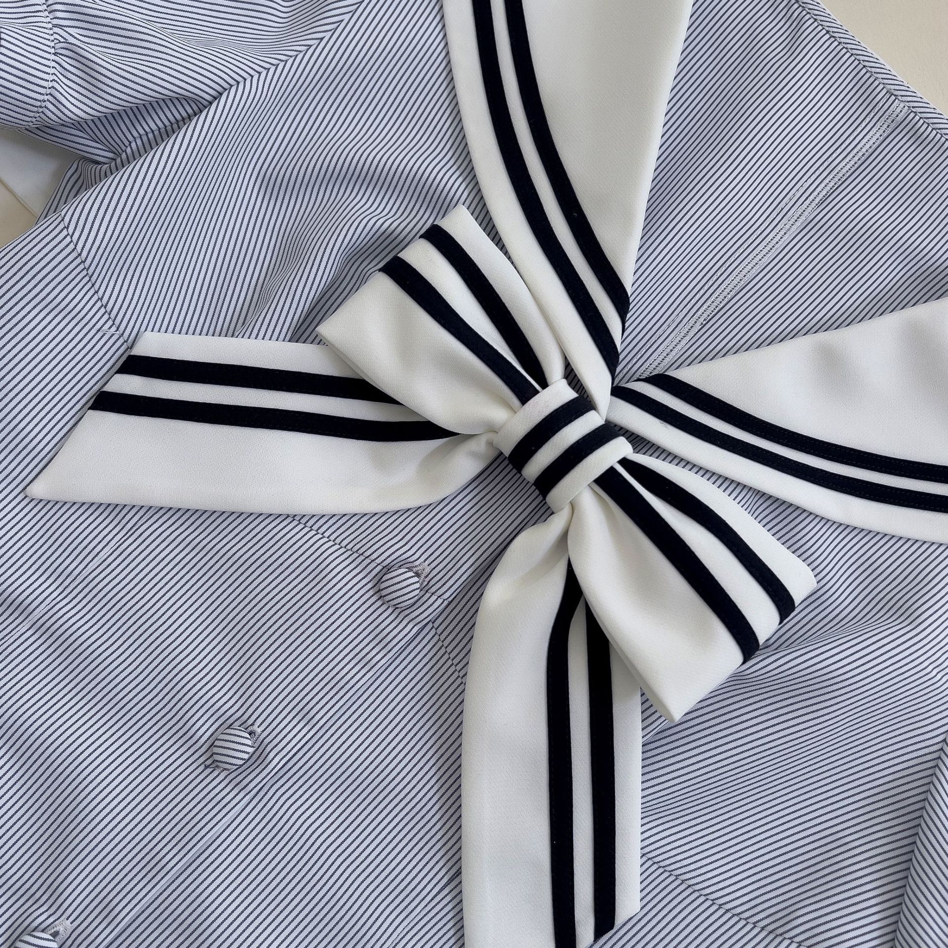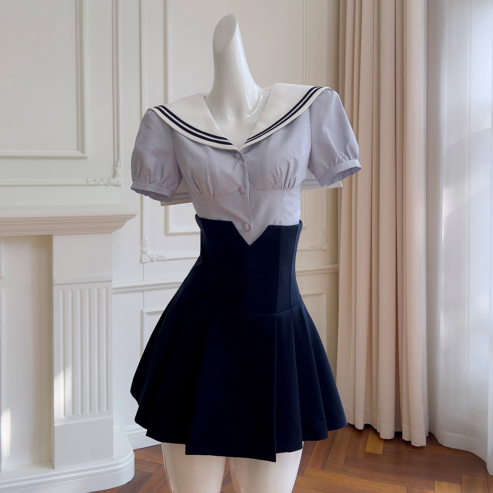 Qtevry Fish Bone Sailor Collar Blouse High Waist Skirt Short Skirt Academy Hottie Two-Piece Navy Suit 8469