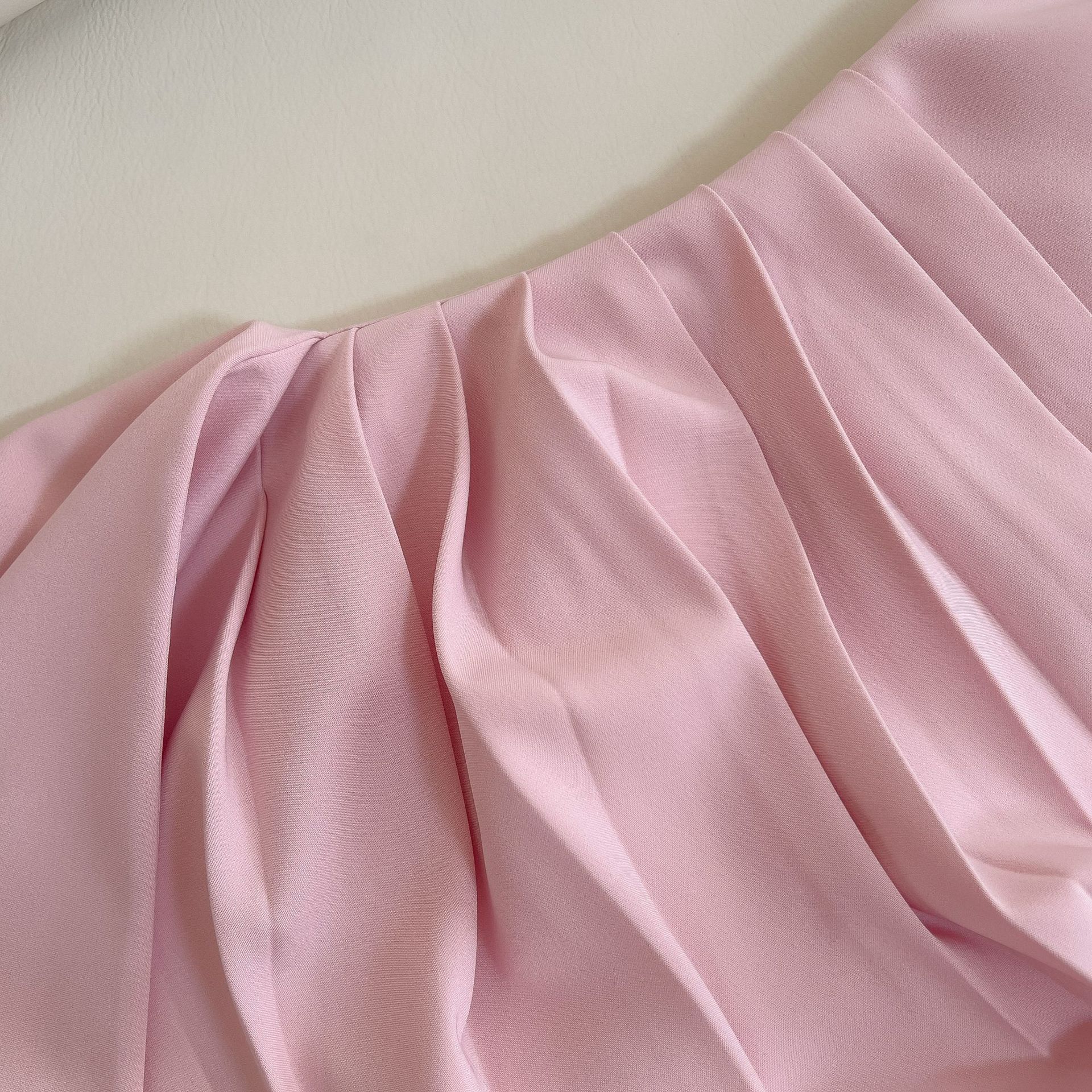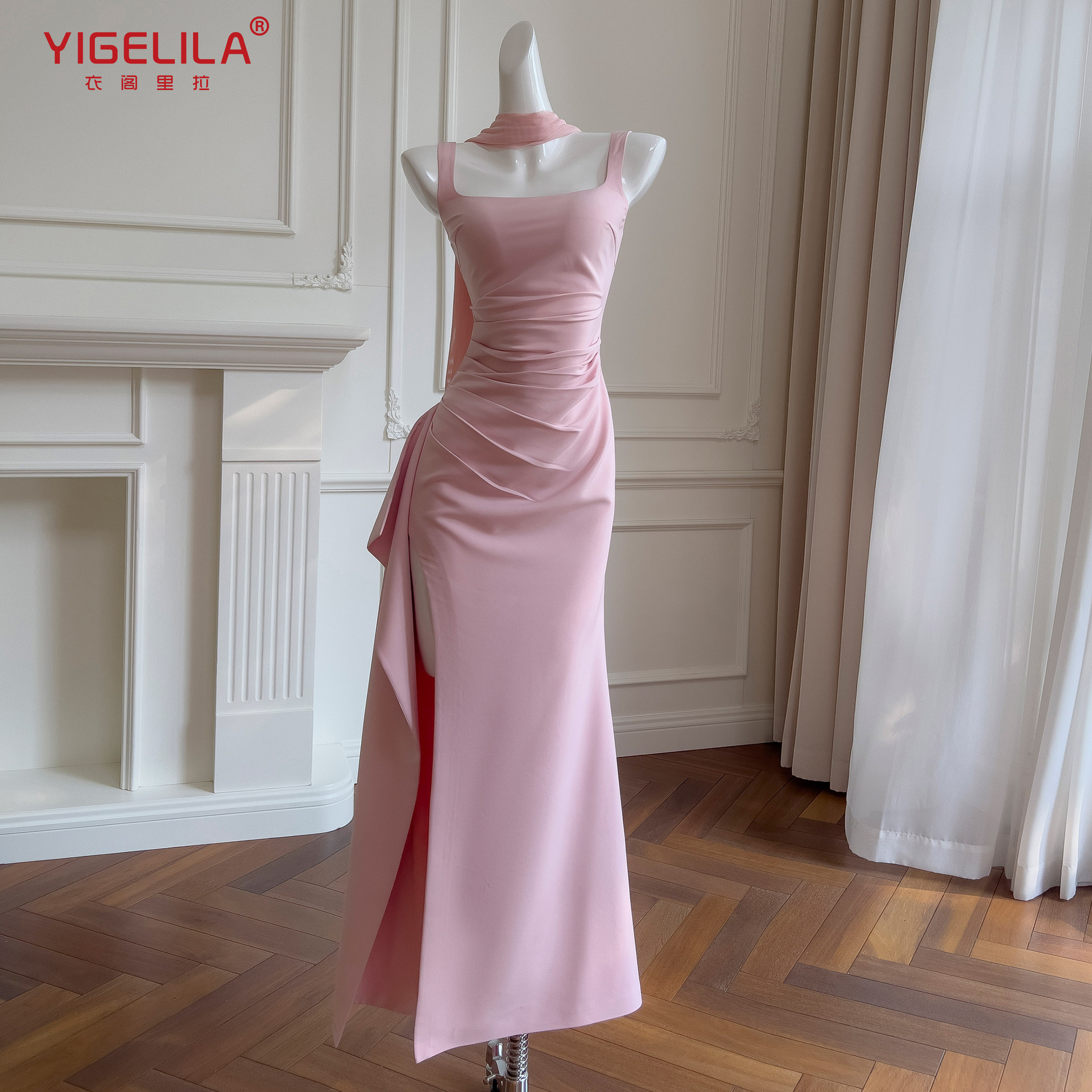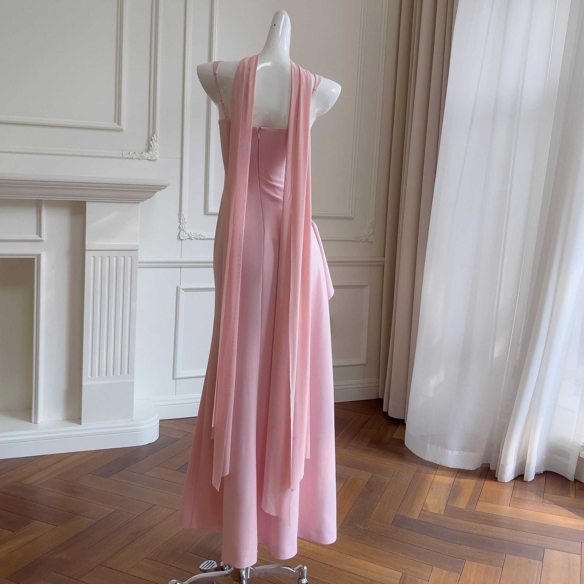 Qtevry Temperament Sling Skirt Folding Ribbon High Open Evening Dress Elegant French Dress 69339+Y479